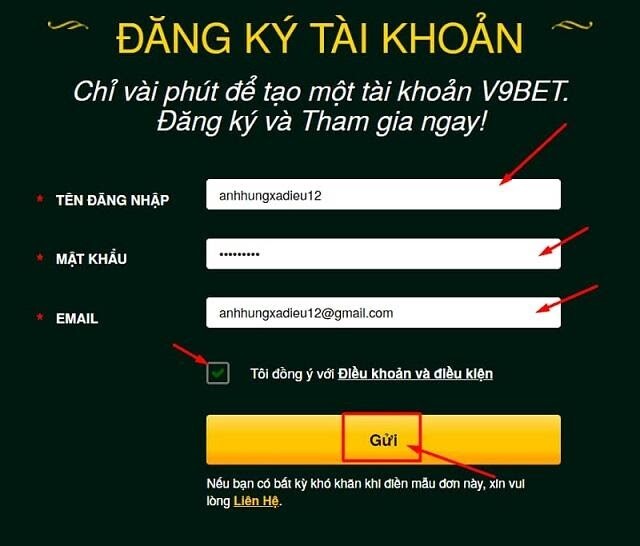 - Điền đầy đủ thông tin cá nhân theo yêu cầu của V9BET.